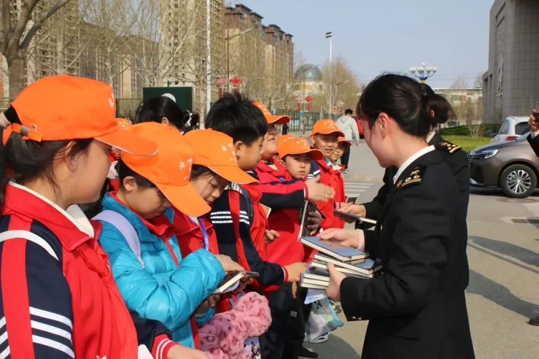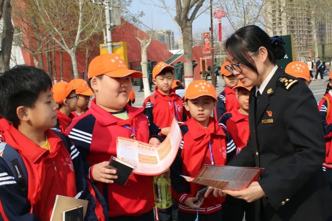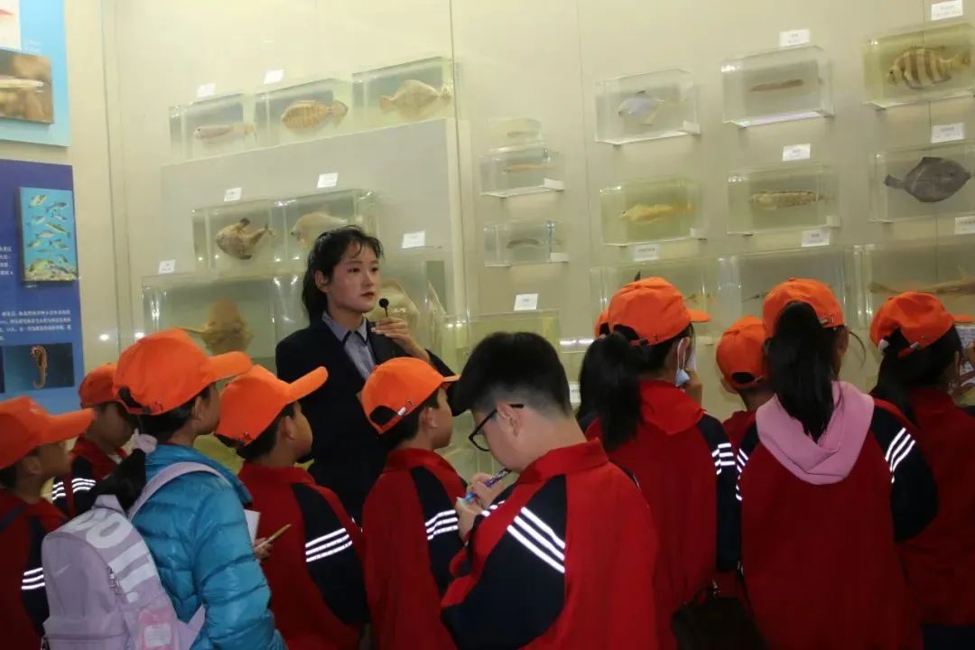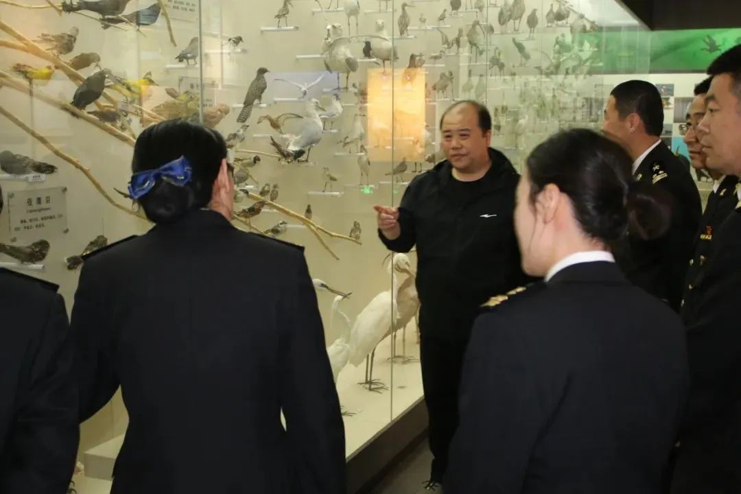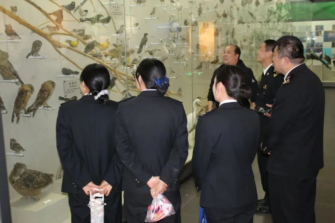 陈新带领明德礼仪社讲解员,引领来访人员到生物标本馆进行了参观。参观过程中,小学生们聚精会神地聆听,海关工作人员们结合相关法律从出入境管理的角度对讲解的内容进行了补充。海关工作人员还为小学生准备并发放了国家生物相关法律相关宣传材料和纪念品,小学生们在收获礼物的同时,也接到了一份保护国门生物安全的责任与使命。