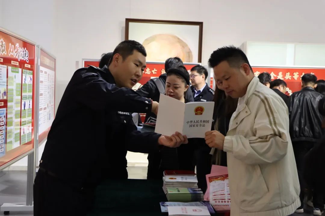 展牌讲解、有奖问答、海报陈列、文创制作、书画展示……在洪昌美术馆,一场沉浸式的“国家安全教育大课堂”正在进行中。市委国安办、市委政法委、市委网信办、市司法局、市国安局、市教育局、市公安局、市委保密机要局等相关部门紧扣活动主题,结合部门职责和工作实际,陈列知识展牌,开展国安主题宣讲,现场解答并发放各类宣传资料,提高了国家安全法治宣传影响力和传播力。