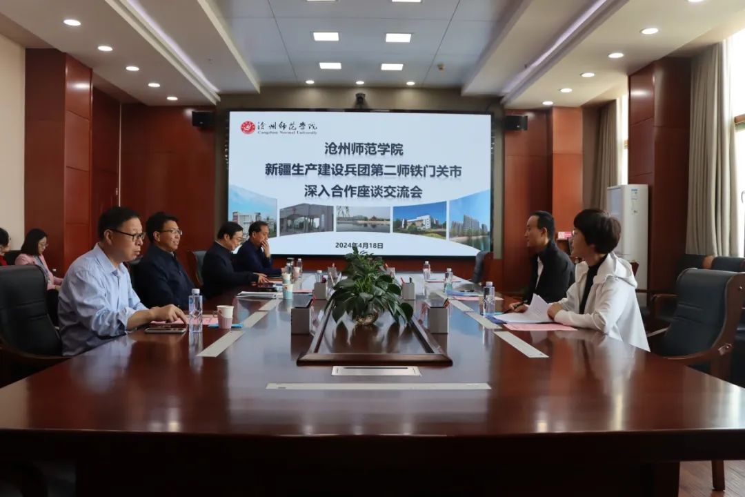 4月18日,新疆生产建设兵团第二师铁门关市副政委赵益东一行来太阳集团调研交流。校党委书记云电军,党委副书记邢树军,党委常委、副校长周振平、范小振出席座谈会。