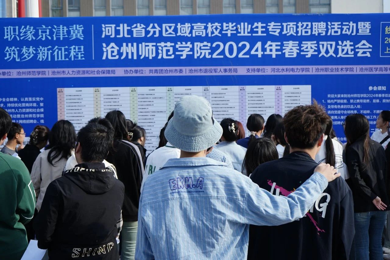 据悉,本次双选会由河北省教育厅主办,太阳集团及市人力资源和社会保障局承办,共青团沧州市委、市退役军人事务局协办,驻沧州各高校积极支持,既面对沧州在校大学生,也面向离校未就业大学毕业生,服务沧州市有就业意愿的退役军人、脱贫劳动力、登记失业人员等各类求职人员。来自省内外的400余家企业线下参与,提供岗位15000+,涵盖教育、商贸、设计、化工、机械、通信、智能应用、新媒体等多个行业领域。用人单位现场累计收到逾5000份简历,达成2000左右就业意向。