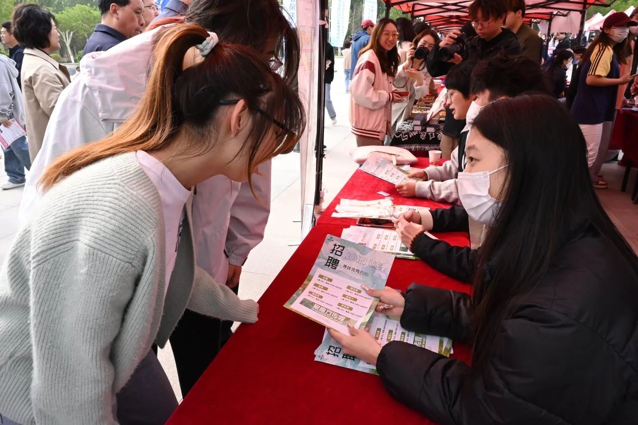 双选会现场,政策解读专员和窗口、贴心的“能量补给站”、笑容满面的志愿者也为这场双选会增添的别样的温暖。