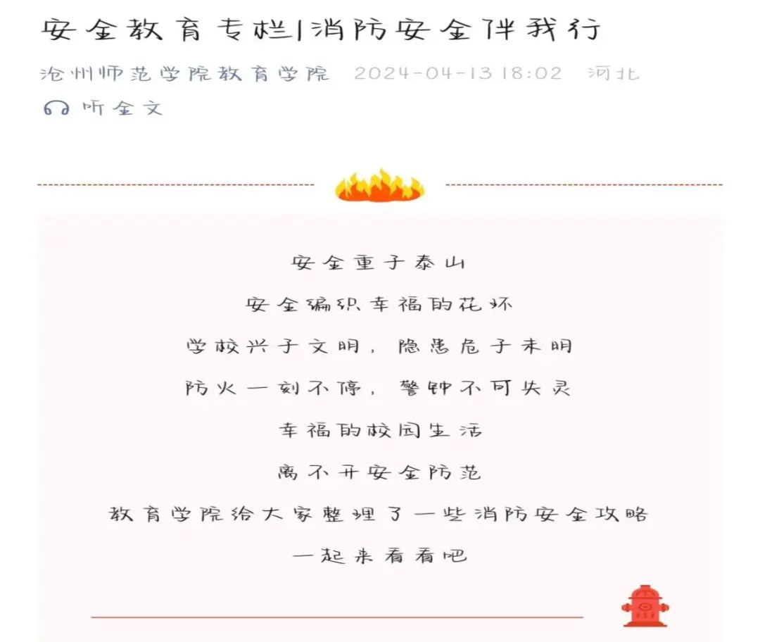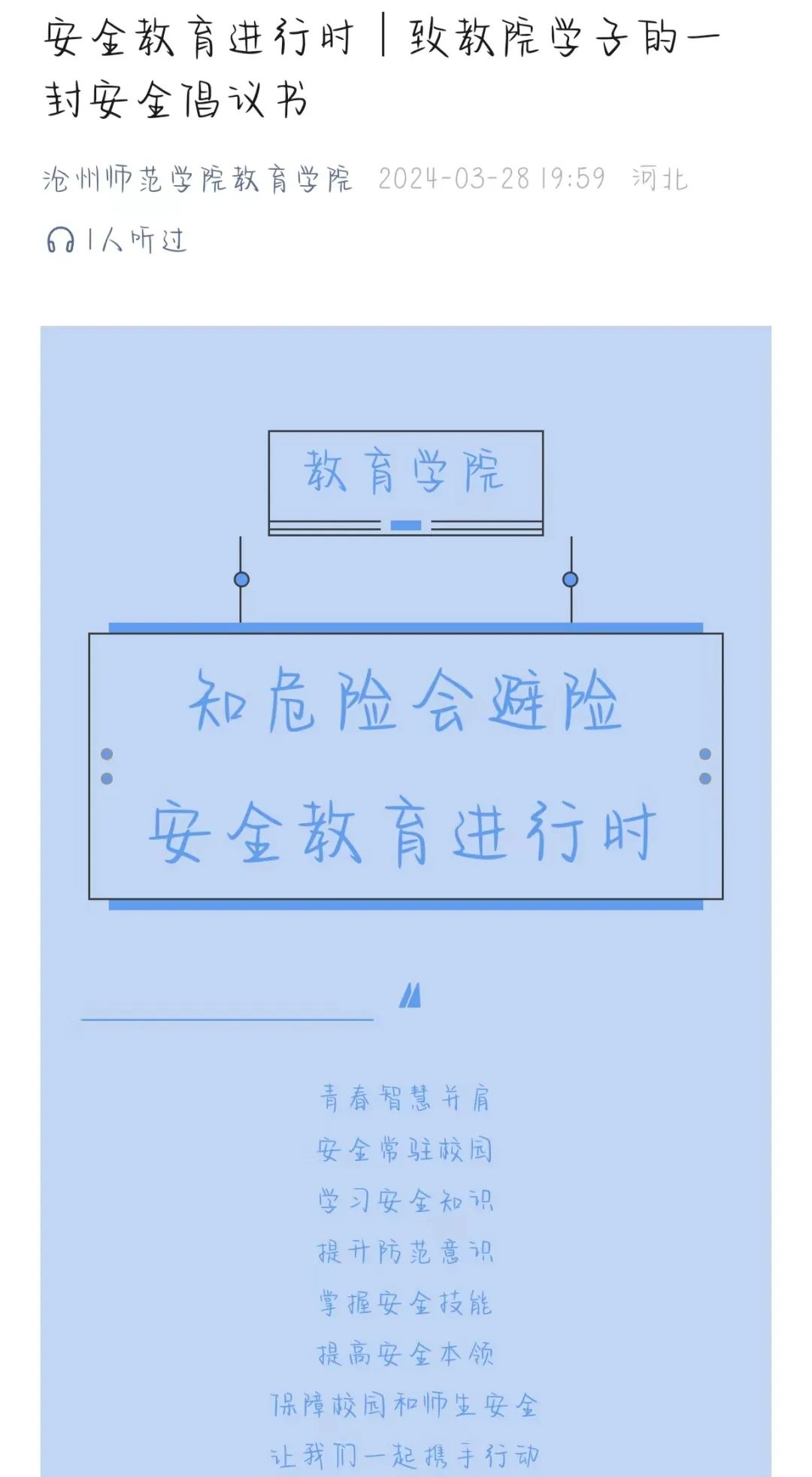 为贯彻总体国家安全观,提高政府和社会公众维护国家安全的法律意识,增强国家安全法普及宣传的效果,进一步提高师生安全意识的能力和水平,教育学院积极按照《沧州师院国家安全日宣传实施方案》要求,积极响应学校安全教育活动的号召,组织开展“415全民国家安全教育日”亮点活动。