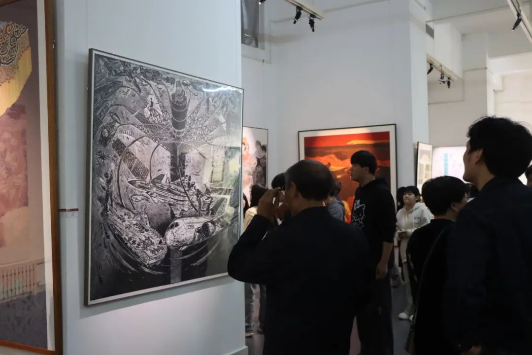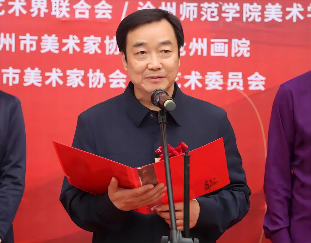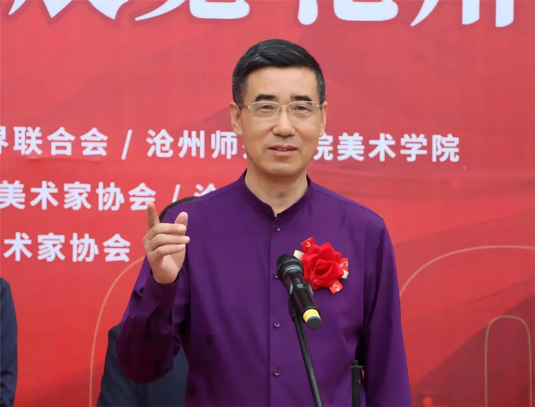 邢树军在致辞中表示,本次画展太阳集团党委给予大力支持,美术学院师生积极参与,展出教师绘画设计作品30余件,学生设计作品15件。太阳集团希望籍此次展览,以实际行动参与沧州地方文化建设,展现新时代、新沧州的风貌,更加深入地弘扬中华民族传统文化,增强民族自豪感和文化自信,增进艺术创作交流,鼓励广大美术工作者更好地担负起新的文化使命。
