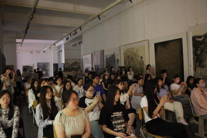在美育沙龙现场,每一个角落都充满了艺术的气息。学生们或站或坐,或三五成群地聚在一起交流感受,或独自一人静静地享受这份音乐的盛宴。整个美育沙龙仿佛变成了一个音乐的海洋,让人沉醉其中,无法自拔。