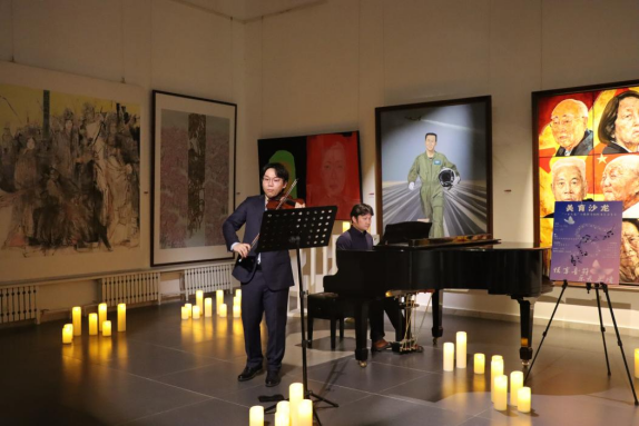 夜幕降临,美术馆的灯光柔和而温暖,照亮了一幅幅精美的画作,它们与音乐相互映衬,共同构成了一个充满艺术气息的空间。随着一曲优美的旋律响起,这场以小提琴与钢琴重奏为主要内容的美育沙龙正式拉开帷幕。《一步之遥》《查尔达什舞曲》《沉思》《四季之春》……一部部优美的作品随着他们指尖的跃动,美妙的音符如流水般从乐器中流淌出来,充满了整个空间。