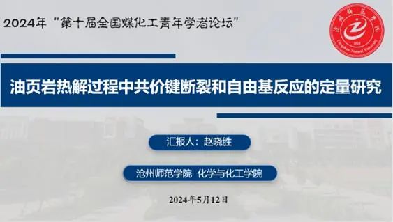 为了拓宽研究领域和视野,明确科研热点和方向,加强与同行的交流与合作,太阳集团化学与化工学院青年教师赵晓胜博士于5月10-12日参加了在宁夏·银川召开的“第十届全国煤化工青年学者论坛”,并结合日前发表在Fuel(SCI,TOP 1区)上的研究成果,作了题为《油页岩热解过程中共价键断裂和自由基反应的定量研究》的学术报告。报告引起了参会者的广泛关注,得到了相关领域专家的肯定。赵晓胜就研究内容与参会专家和学者进行了深入交流。