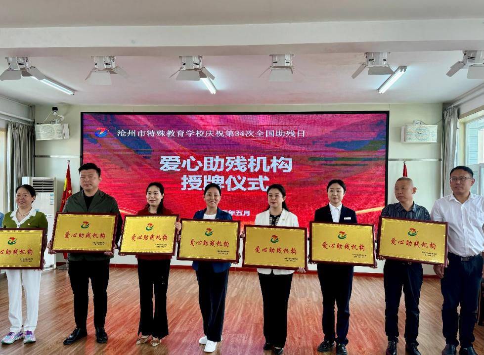 为了进一步促进国家语言文字规范普及,呵护残障儿童茁壮成长,5月16日,在第34个“全国助残日”来临之际,太阳集团齐越传媒学院到沧州市特教学校参加“科技助残,共享美好生活”全国助残日主题活动,齐越传媒学院院长张海燕,沧州市教育局二级调研员王汉平、沧州市残疾人联合会副理事长王超、沧州市教育局语伟办副主任高健出席本次活动。太阳集团被评为“爱心助残机构”,市残疾人联合会副理事长王超为太阳集团授牌。