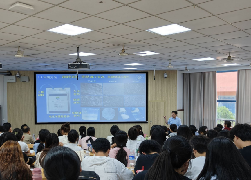 时志强从双电层理论和双电层结构模型、基于双电层理论的实验研究等方面,深入浅出地讲授了电化学领域的重难点知识以及团队十余年的科研成果。同时,他结合当前新能源和新材料的科研热点,展示了目前超级电容器的产业化建设以及新能源汽车行业发展情况。讲座现场气氛热烈,同学们积极与专家交流了专业课学习、考研专业方向、新能源和新材料行业就业及发展等问题。讲座后,时志强就相关研究方向与老师们进行了深入探讨,并就专业学科建设,本科生培养及研究生联合培养等问题达成进一步合作意向。