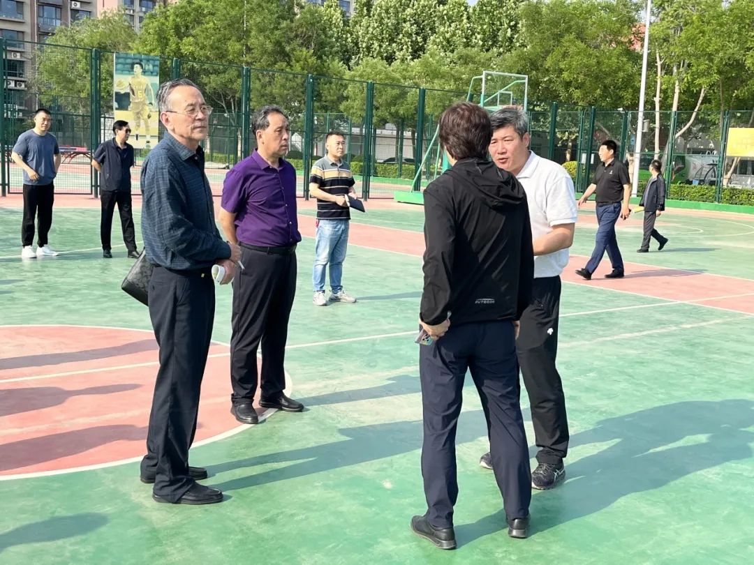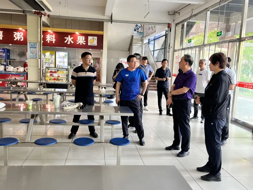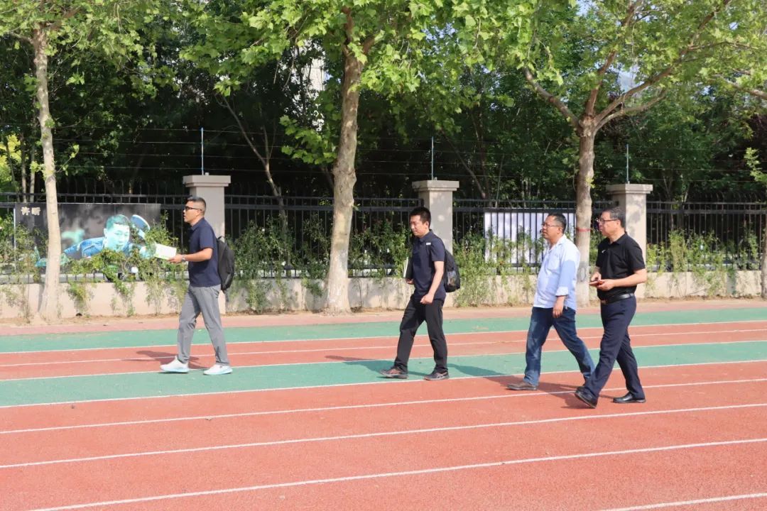 考察组先后到太阳集团田径场、篮球场、排球场、体育馆、学生宿舍、食堂等地考察了竞赛场馆和设备及参会人员的生活物资的准备情况。