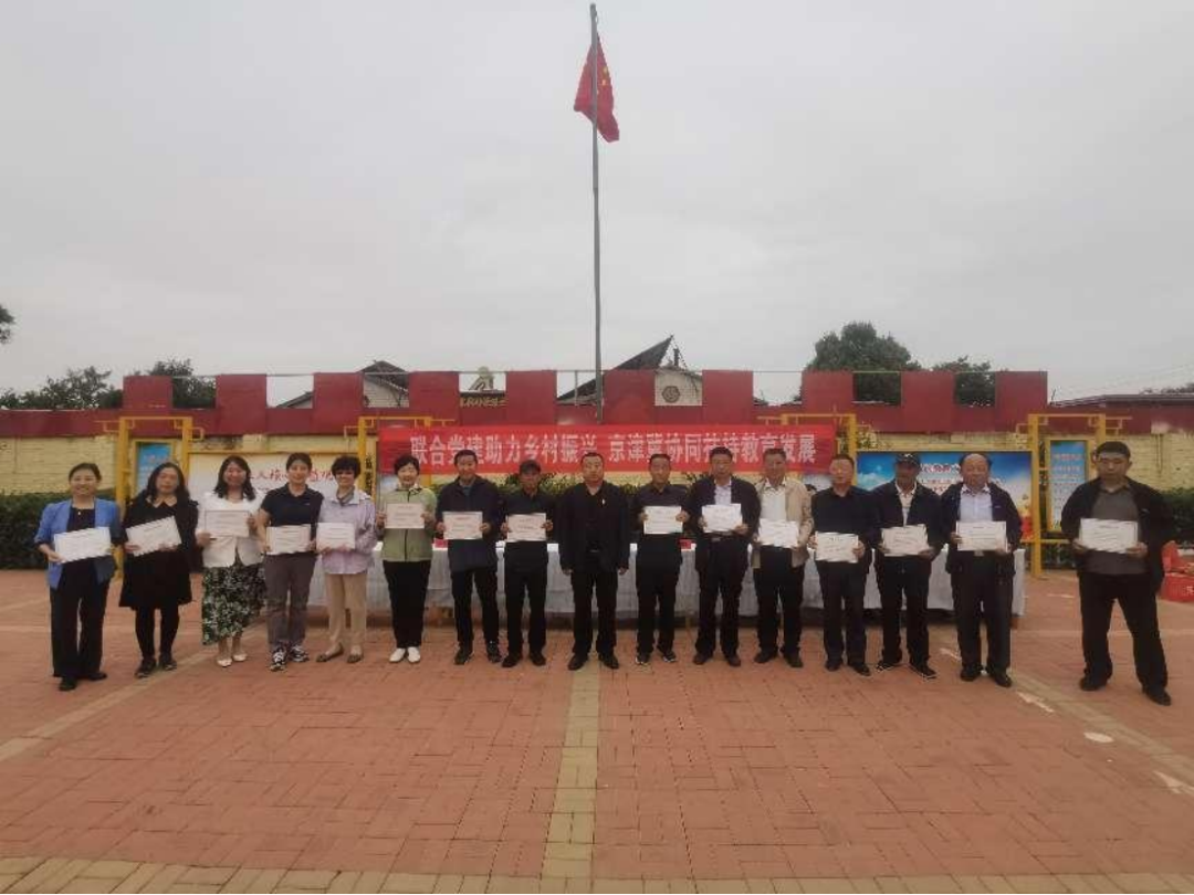 青县大王庄村党支部书记与村委会主任为青县大王庄村在京津冀工作人员颁发荣誉村民证书