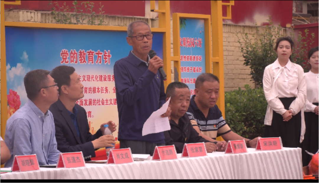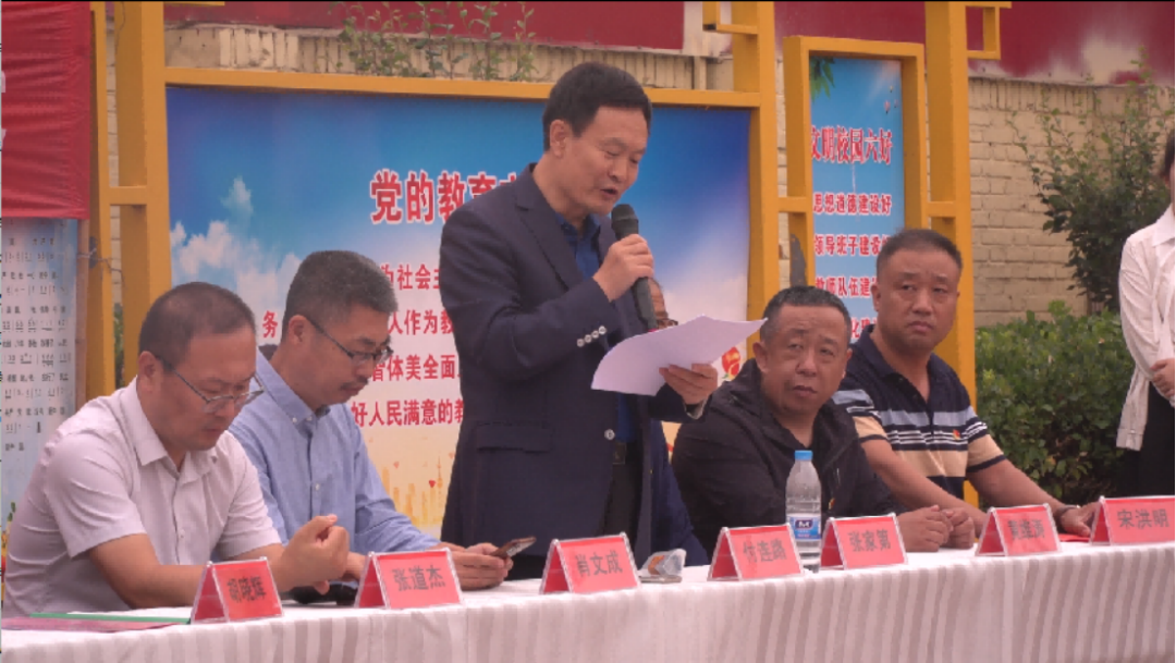 沧州市教育局语委办师教科科长刘文华为青县大王庄小学校长授牌