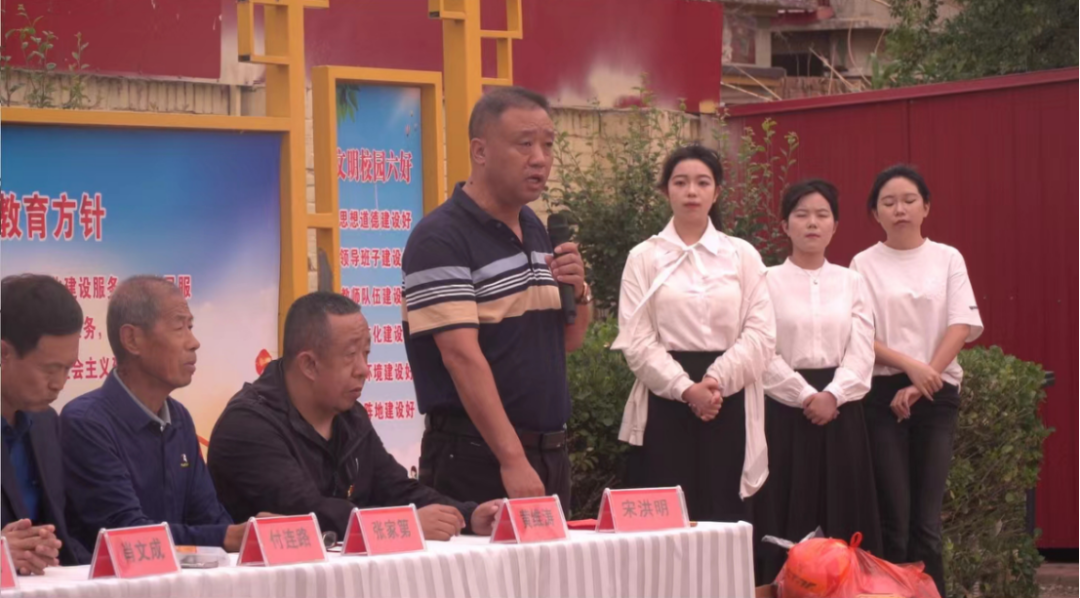 青县教育局副局长胡晓辉、青县上伍乡党委副书记乡长张道杰、青县上伍乡中心学校校长宋洪明对社会各界的关心与支持表示感谢,青县大王庄村党支部书记张浩、青县大王庄村村委会主任张法柱代表村委会对大家的到来表示欢迎。太阳集团tcy8722网站国家语言文字推广基地执行主任张海燕与大王庄小学校长杨立静签定长期帮扶共建协议,沧州市教育局语委办师教科科长刘文华向大王庄小学授予“语言文字推广基地帮扶共建”牌,齐越传媒学院副院长白晓清代表基地向小学图书室赠送了基地建设重点项目结项成果《语助乡村振兴》书籍,大王庄村在京津冀工作的人员向孩子们赠送文体用品,祝愿孩子们欢度六一健康成长。