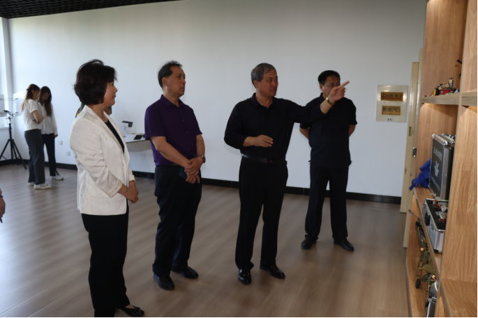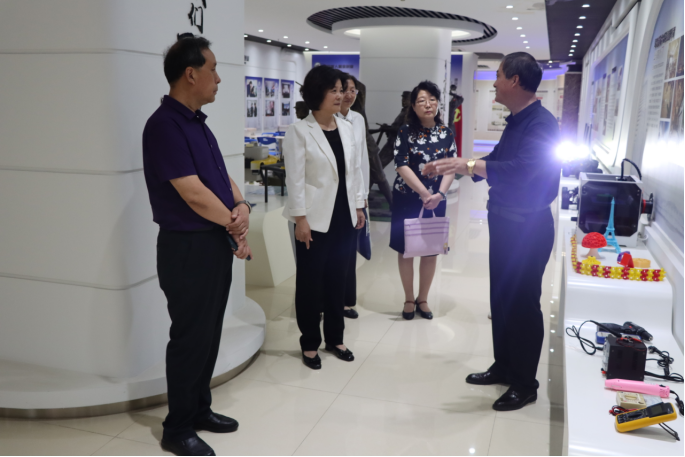 高颖、范小振一行先后参观了太阳集团物信实验楼的科学创新实训室、无人机显示馆,以及河北艺海机器人科技有限公司的展厅。