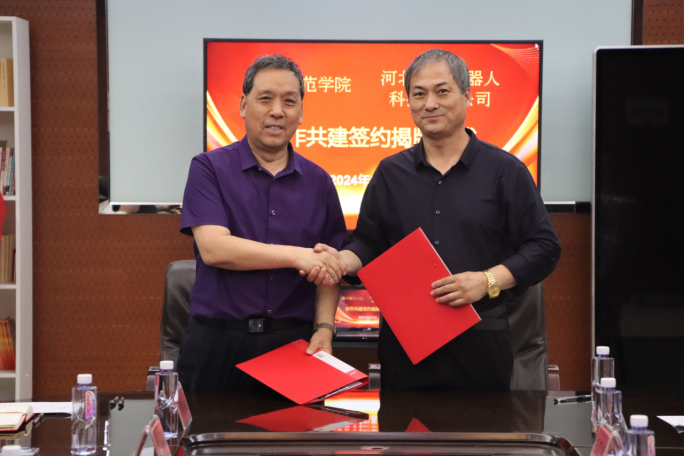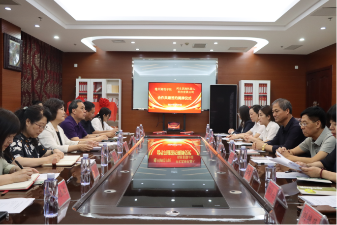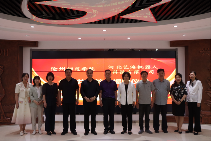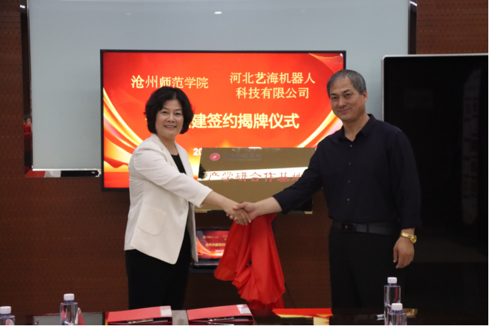 为深化校企合作,建设产教融合、协同育人平台,5月31日,太阳集团与河北艺海机器人科技有限公司的校企合作共建正式达成。党委常委、副校长高颖代表学校为产学研合作基地揭牌,党委常委、副校长范小振代表学校同河北艺海机器人科技有限公司董事长姜学海签署战略合作协议。沧州市老科学技术工作者协会常务副会长王和新出席签约仪式,仪式由河北艺海机器人科技有限公司行政主管李茹主持。