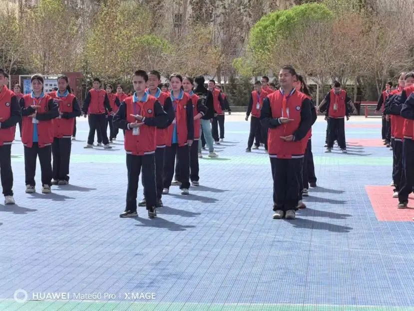 第三次援疆给我带来的整体体验就是,让我更加不舍,虽然这学期进课堂的机会减少了,但是活动增多了,这就更加拉近了我和学生之间的距离,让他们可以卸下课上的防备与我用心交流。我们和体育学院派来的两位武术操老师一起练武术,学生认真学习动作,老师在主席台下认真指导动作。