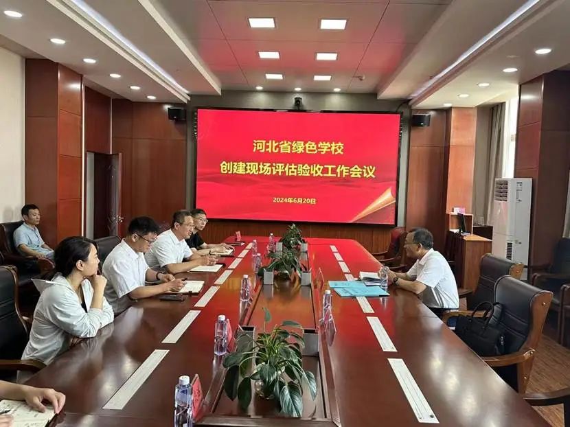 6月20日,省绿色学校(高校)评估验收领导小组成员、省学校德育工作中心副主任张峰及沧州市教育局相关负责同志一行到太阳集团开展评估验收工作。太阳集团党委宣传部、后勤管理处、现代教育技术中心、安全工作处相关工作人员参加会议。
