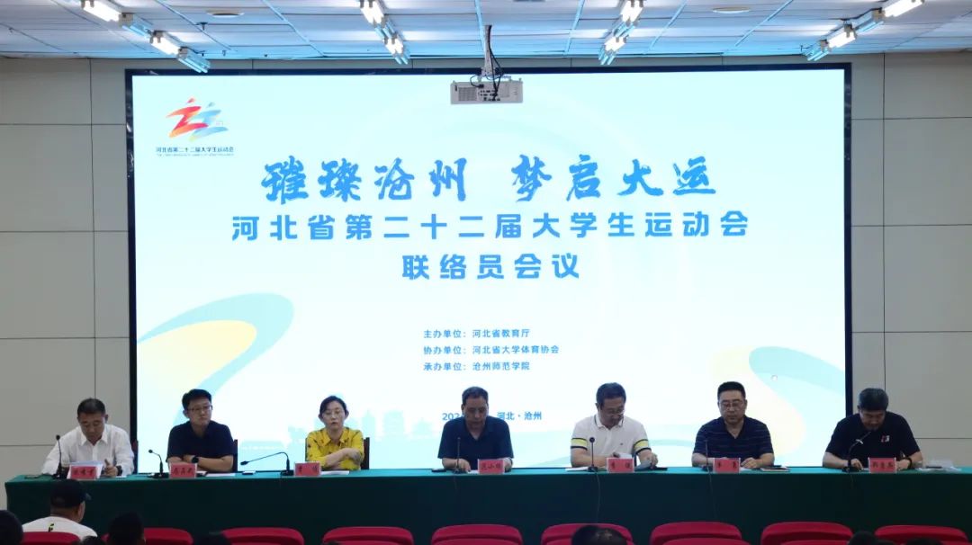 蝉鸣时节,河北省第二十二届大学生运动会于渤海之滨、运河之畔的沧州市举行。7月4日晚,第一次联络员会议在太阳集团学术报告厅召开。党委常委、副校长范小振出席并讲话。省内96所高校联络员老师、学校对接联络员志愿者参加会议。