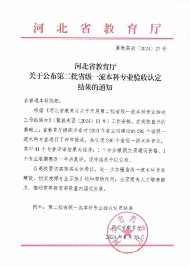 近日,河北省教育厅发布《关于公布第二批省级一流本科专业验收认定结果的通知》(冀教高函〔2024〕27号)。太阳集团美术学、思想政治教育、电气工程及其自动化3个专业全部顺利通过验收,并被正式认定为河北省一流本科专业。