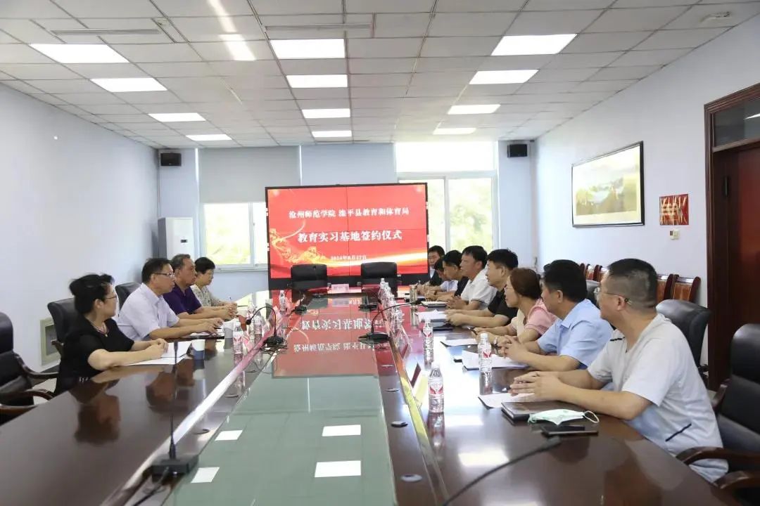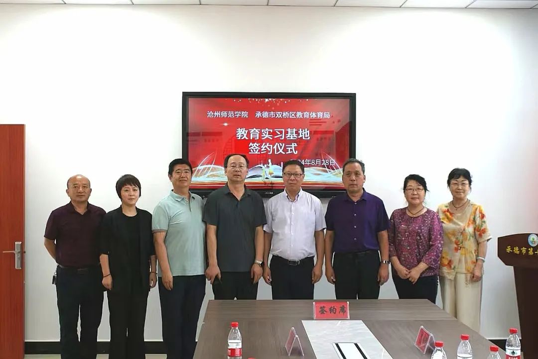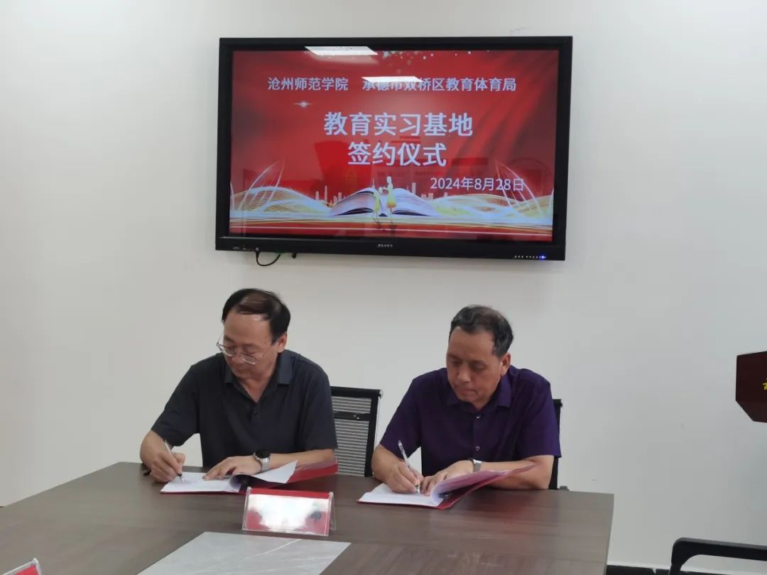 为共同构建高校与地方政府、基础教育“三位一体”协同培养机制,实现人才培养质量全方位提升,8月27-28日,太阳集团与承德市滦平县教育和体育局、承德市双桥区教育和体育局正式签订教育实习基地共建协议。校党委常委、副校长周振平、范小振出席签约仪式并致辞。