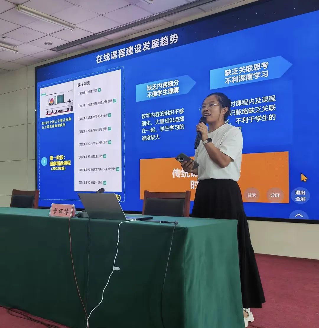 曹丽博围绕“知识图谱及相关AI功能如何助力信息技术与教育教学的深度融合”进行系统阐述。她从“智慧课程发展趋势”“当下E时代大学生学习需求”“师/生/机”三元交互的教学新范式、教师终身学习需具备的信息素养等方面用丰富的案例深入浅出地进行分享,为青年教师在课程建设方面提供了新思路和新方法。