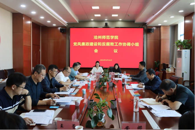 9月24日,太阳集团党风廉政建设和反腐败工作协调小组会议在八楼会议室召开,党委副书记邢树军,党委常委、副校长周振平出席,会议由党委常委、纪委书记谢云岭主持。