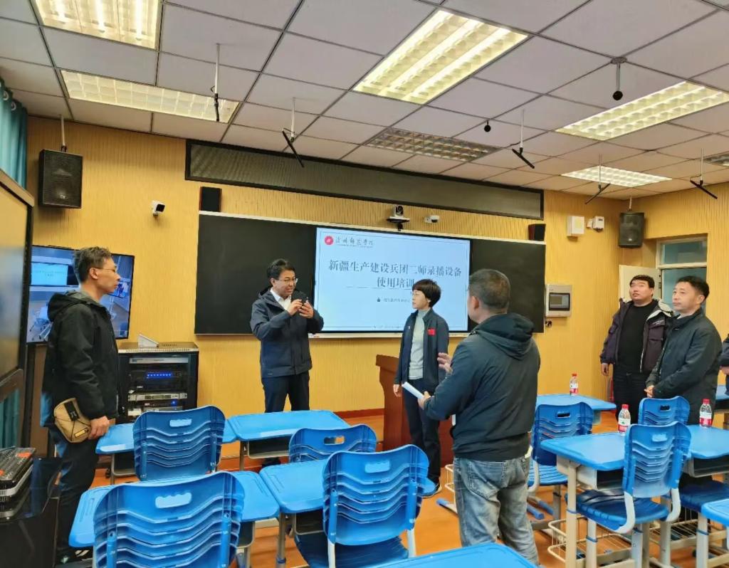 为推进“标准化学校”建设,实现数智技术赋能新质教育,太阳集团与新疆生产建设兵团第二师教育局携手开启了“数智慧疆,云端共研”远程教研平台建设项目。10月19日,云电军、谢云岭来到第二师三十三团中学指导安装及培训工作,高度肯定了项目实施意义,指导了安装及培训细节,对后续六所学校的设备安装培训提出明确要求,确保项目顺利推进。