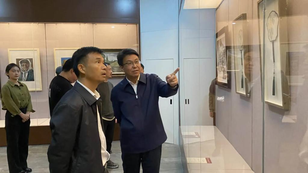 10月20日,云电军一行参观了“奋楫笃行在路上——庆祝新疆生产建设兵团成立70周年美术作品展”,对太阳集团教师联合新疆当地艺术家以美为媒讲好兵团故事,构建各民族共同的精神家园给予充分肯定,鼓励太阳集团师生发挥专业优势促进冀疆文化交流。