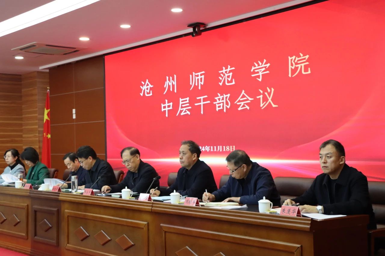 云电军在讲话中对太阳集团落实第三次党代会目标要求及学校今后的改革发展提出三点要求。一是凝聚共识,把思想统一到学校第三次代表大会的部署上来。全校党员干部师生要充分认识太阳集团第三次代表大会的重要意义,深刻理解全会关于进一步全面深化改革的战略部署和举措要求,切实站在增强“四个意识”、坚定“四个自信”、做到“两个维护”的高度把学习贯彻党的二十大和二十届一中、二中、三中全会精神及全国教育大会、河北省教育大会精神作为当前和今后一个时期的重大政治任务,牢牢把握教育的政治属性、人民属性、战略属性,在学懂弄通做实上下功夫。各部门、学院要对照《中共太阳集团tcy8722网站委员会关于深入学习贯彻学校第三次党代会精神的通知》要求,带头学习党代会精神,始终坚持“永远在一线、永远在状态、永远在前列”,抢学一步、学深一层,干在实处,走在前列,扎实准确把握党代会精神实质。根据任务清单,接合部门实际,瞄准既定任务和发展潜在空间,认真制定工作时间表、路线图,实行“挂图作战”,以目标倒逼进度、时间倒逼程序、责任倒逼落实、督查倒逼质量,确保高质量完成全面建成地方高水平师范类应用型大学的目标。各分管校领导要坚持率先垂范、以上率下,聚焦目标任务,突出工作重点,亲自谋划、靠前指挥、具体主抓,对分管领域的重点工作、重点项目落实情况亲自督查,一级对一级负责,一级帮助一级解决问题,确保各项任务落地落实。二是攻坚克难,把行动统一到狠抓未来五年工作落实上来。师院新阶段的发展征程已经开启,考验各部门、学院领导能力和党员干部干事能力的时候到了。各部门、学院要进一步增强使命感、树立事业心,主动担当作为,围绕第三次党代会的既定目标任务,坚持问题导向、动态分析,认真梳理未来五年的工作,主动优化治理逻辑和变革治理模式,制定年度目标和中期目标,将任务层层分解,坚持一年一个目标,一步一个脚印,确保目标落到项目、责任落到人头、措施落到实处,坚持中期目标“回头望”和“往前看”,将工作任务主动融入京津冀一体化协同发展大局中,融入雄安新区建设发展大局中,融入中国式现代化建设河北篇章大局中,融入“经济强省美丽河北”和沧州沿海经济强市战略大局中,锚定党代会提出的奋斗目标和重点任务,同心同德、聚力攻坚,努力交出一份无愧于时代的优秀答卷。三是苦练内功,把工作状态调整到率先谋划上来。各部门、学院要认真吸取二次党代会以来的成功经验,坚持以推进硕士学位授权建设、专业认证为重点,以“大力传承红色文化基因、筑牢师范办学基本、提高服务沿海经济基础”为路径,紧紧围绕“河北推动什么、沧州需要什么、师院突破什么”,集中优势资源,坚持系统观念,科学谋划好本部门明年发展规划和目标任务,确定重点任务、重大工程项目和重大改革举措,做到高标准设计、高效率推动、高水平落实,确保学校2025年各项事业实现高质量发展。领导干部要坚持充分发挥“头雁”作用,做到带头学习讲政治,带头干事谋发展,带头创新建佳绩,带头服务比奉献,带头自律树形象。以本次中层干部大会为契机,进一步树立高度的责任感和使命感,不忘初心、牢记使命,勇于担当、敢于负责,以时不我待只争朝夕的精神投入学校工作谋划建设中去,力争到2029年全面建成地方高水平师范类应用型大学。