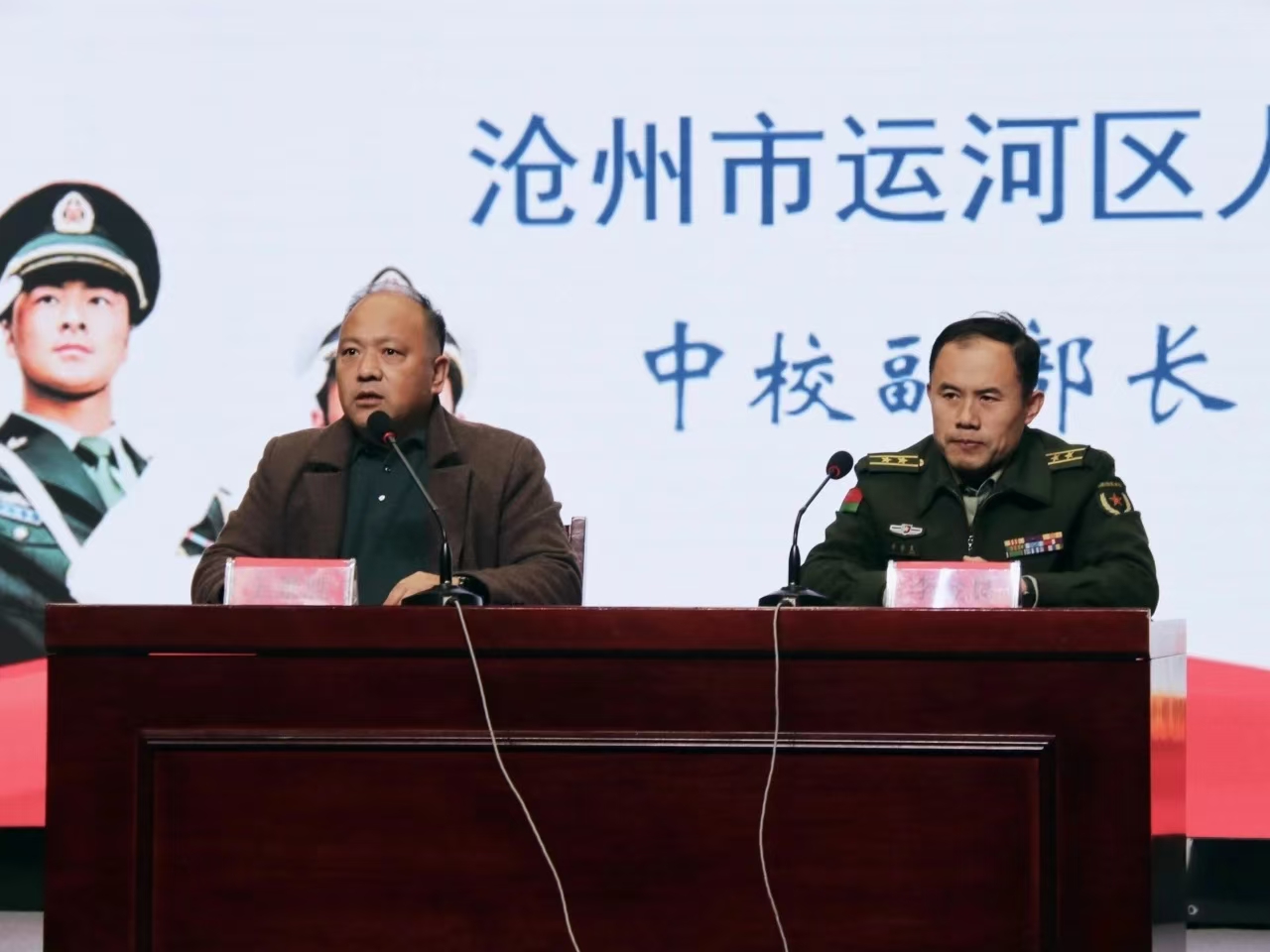 为深入开展国防教育,鼓励广大学子响应国家号召,积极参军报国、献身国防,太阳集团邀请沧州市运河区人民武装部做征兵政策宣讲。学生处副处长王景胜主持会议,各学院学生代表300余人参加。