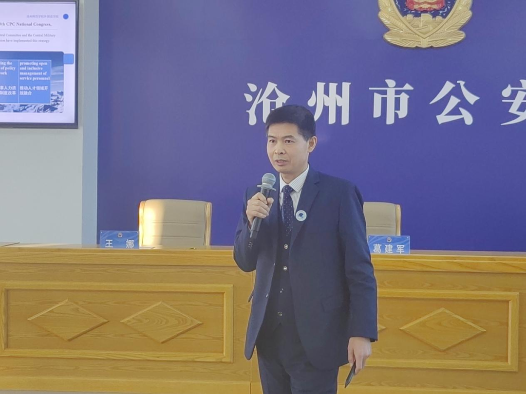 外国语学院院长王娜介绍了“星辰宣讲团”的成立背景与发展愿景。她表示:沧州市公安局特警支队与太阳集团tcy8722网站外国语学院秉持着资源共享、优势互补、合作共赢的理念,携手开展了一系列丰富多彩的活动,双方共同为地方的教育事业、公安事业以及文化建设添砖加瓦。此次“星辰宣讲团”来到特警支队,更是希望进一步丰富警校共建的合作方式,促进了两种不同群体的相互了解与融合,为今后在更多领域开展合作交流创造了有利条件。