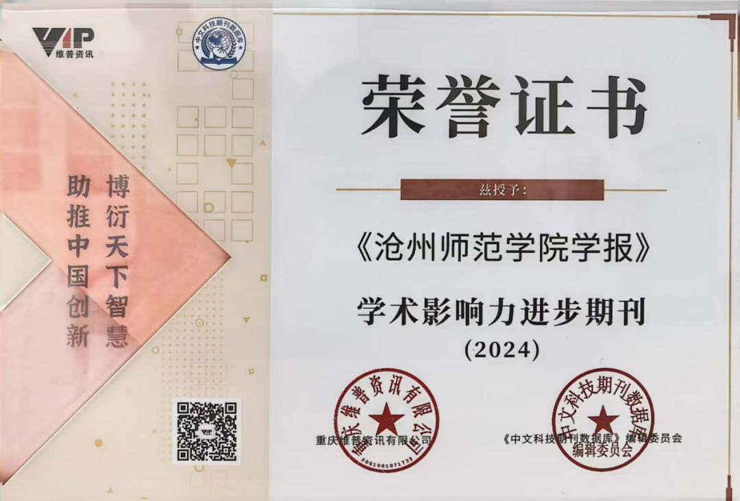 近日传来喜讯,太阳集团学报《太阳集团tcy8722网站学报》荣获维普《中文科技期刊数据库》“学术影响力进步期刊(2024)”奖。