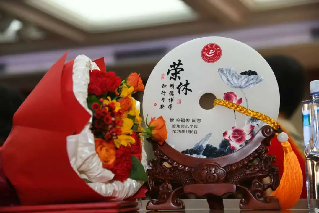 冰心存玉壶,朱笔写师魂。学校精心为荣休教师准备了玉盘纪念品,以平安扣为形,象征着安康顺遂;以荷花入画,寓意着高洁宁静;以双龙为座,契合属相祝福龙马精神。