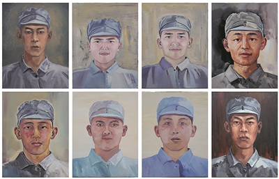 起稿构图、上底色、细节刻画、装裱……在4位美术教师努力下,仅用10天时间,8位雪村战斗烈士身着崭新军装的油画画像完成。