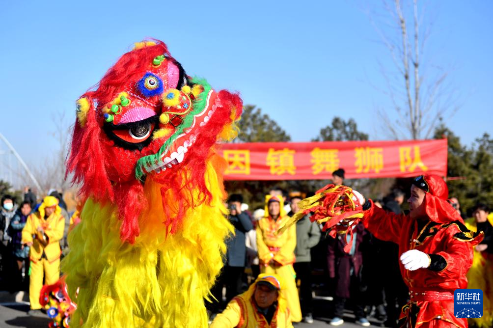 2月9日,河北省石家庄市元氏县群众表演舞狮。新华社记者 王晓 摄