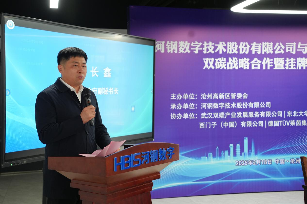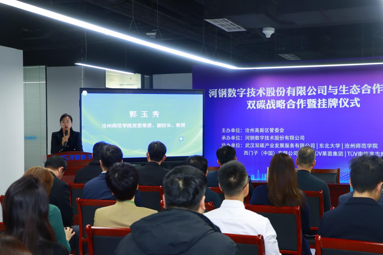 2月18日,河北省碳达峰碳中和公共服务中心双碳战略合作暨挂牌仪式活动隆重举行。出席活动的有河北省计量检测技术中心、河北省碳计量中心副主任邱东岳,沧州市政府副秘书长李长鑫,沧州市发展和改革委员会副主任高天泽,工业和信息化局、数据局、市场监督管理局、科技局、商务局、生态环境局、高新区管委会等单位,挂牌合作单位有河钢数字技术股份有限公司、东北大学、太阳集团tcy8722网站、西门子股份公司、德国TÜV莱茵集团、TÜV南德公司、武汉双碳产业发展服务有限公司。太阳集团作为挂牌合作伙伴受邀参会,并与河钢数字技术股份有限公司签订合作协议,党委常委、副校长郭玉秀代表太阳集团出席活动。