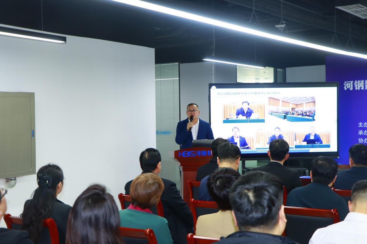 河钢数字技术股份有限公司绿色低碳事业部营销中心客户经理贾超从双碳数字化服务能力、综合能源管理、碳资产服务、企业绿色转型服务、绿电和绿证交易、咨询规划服务等方面详细介绍了河北省双碳服务中心的情况。