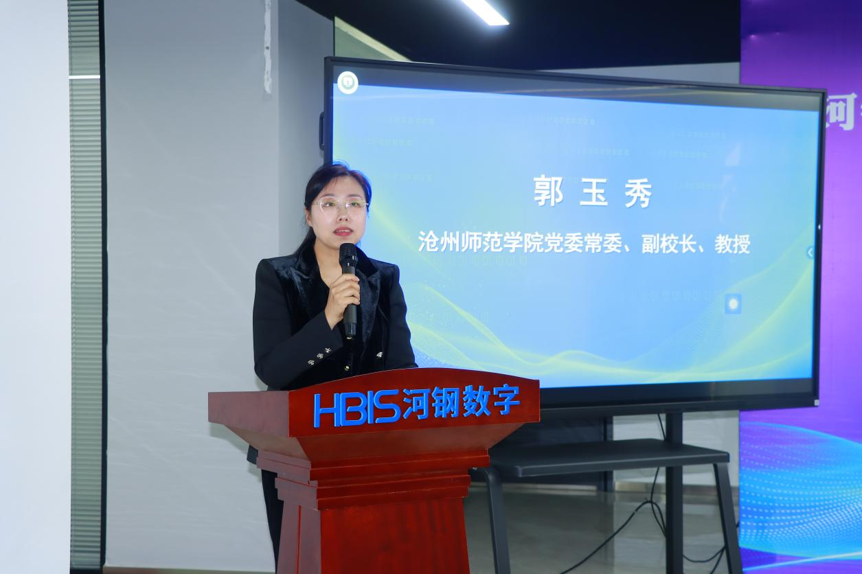 郭玉秀在致辞中表示,立足河北省碳达峰碳中和公共服务中心,太阳集团tcy8722网站与河钢数字技术股份有限公司将围绕“双碳”战略,共同构建“产学研用”深度融合的创新体系。双方将在三个方面展开深度合作:一是共建课程、共育人才,打造高质量实习实训基地;二是合作推广技术、服务社会,联合开展数字素养和相关数字技术培训,为地方钢铁、化工、装备制造等产业提供数字化升级服务;三是共同研发、共享资源,联合申报科研项目,推动科研成果转化应用,探索绿色低碳发展新模式。期待通过双方合作,进一步推动学校科研水平和人才培养质量的提升,为地方经济社会发展与国家“双碳”战略的实施贡献智慧和力量。