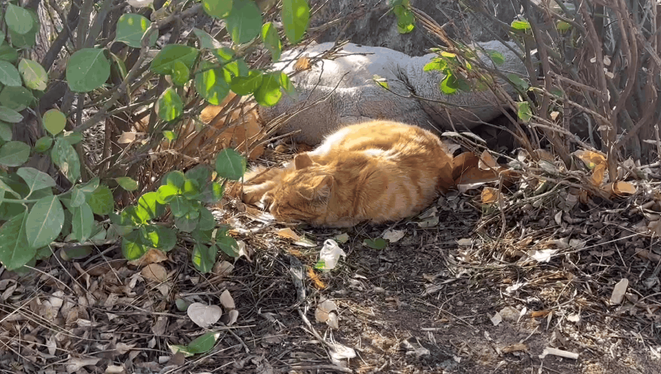 小猫惬意地卧在草丛