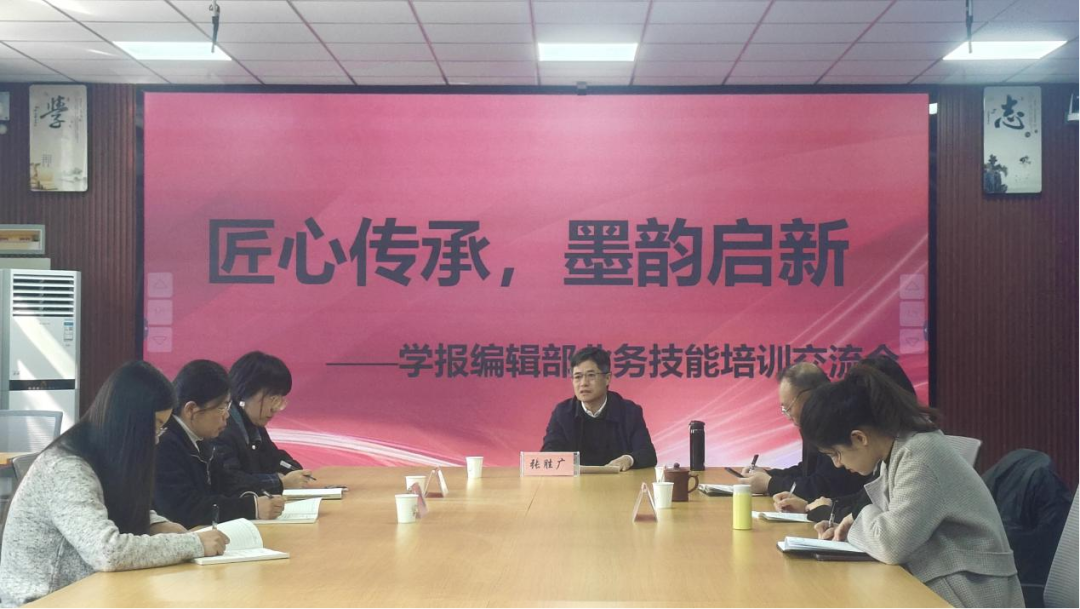 为进一步提升编辑人员的业务能力和专业素养,3月28日上午,学报编辑部邀请学报原主编张胜广和原副主编罗萍为全体编辑人员进行了业务技能培训。此次培训以“匠心传承,墨韵启新”为主题,旨在通过分享经验、交流心得,促进编辑人员的专业成长,推动学报工作的高质量发展。