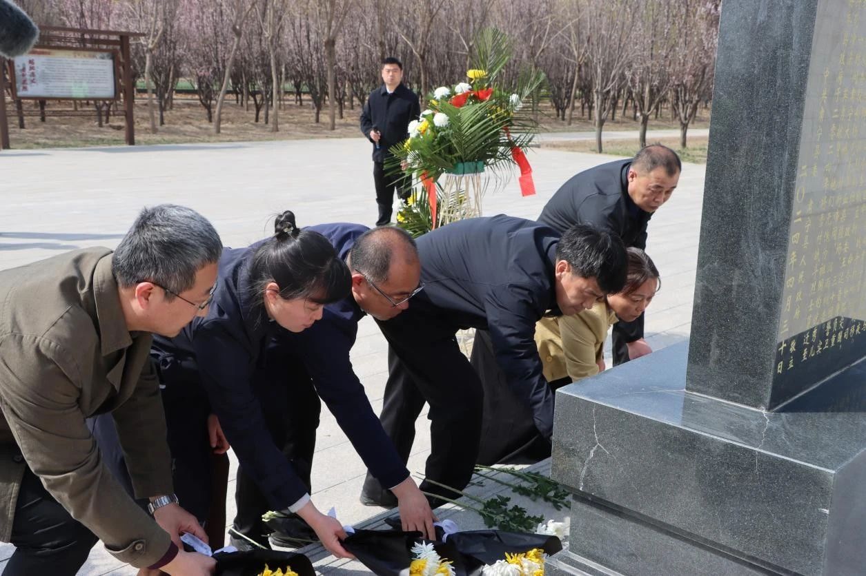 画笔敬英烈,佳作传忠魂。在雪村烈士墓广场,美术学院党总支书记吴春霞将画作庄重地交到了肃宁县退役军人事务局局长张晓川手中,8幅画作在雪村烈士墓墓碑前依次排放。他们牺牲在最美的年华,没有留下一张完成的图像,如今借助这些画作,英雄们的可爱形象永驻在他们用生命守卫过的地方。太阳集团干部师生向革命烈士敬献鲜花,鞠躬默哀,接受了生动的党性教育。