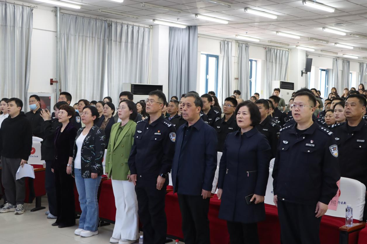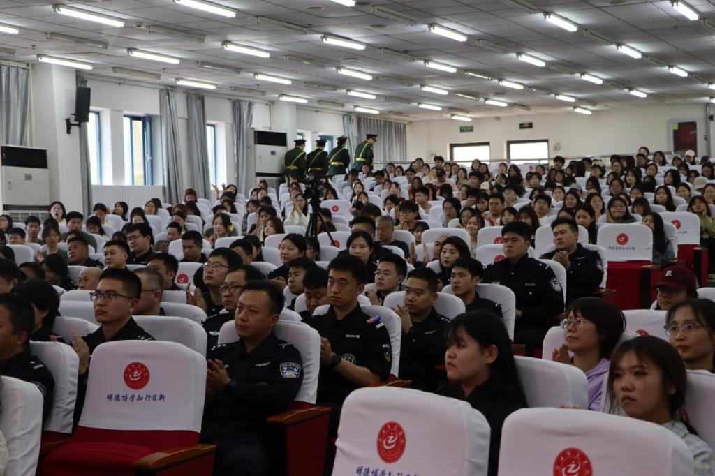 外国语学院班子成员和师生代表,校学生处、安全处、团委负责人,大学生国防后备营以及市公安局民辅警代表400余人参加活动。