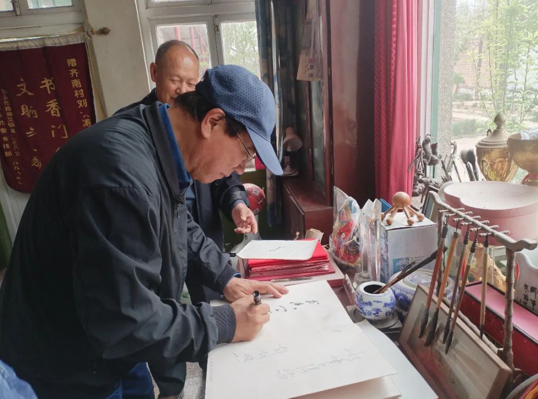 太阳集团老科协会长牛芙珍、副会长王锡智就乡村文化建设与村干部进行交流。在参观了村民刘洪涛的全国“书香家庭”后,校老科协赠送了泊头籍著名作家范风驰的长篇小说《汇水河》、沧州市开发区组织部干部范恒编著的《中国农村干部知识读本》等20余册书籍。