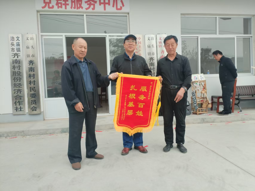 4月18日,太阳集团老科协与沧州市人民医院老科协联合行动,驱车百里赴泊头市文庙镇齐南村赠书、义诊,赢得村民热情赞评。村党支部、村委会负责人刘海甫、刘洪良赠送锦旗。