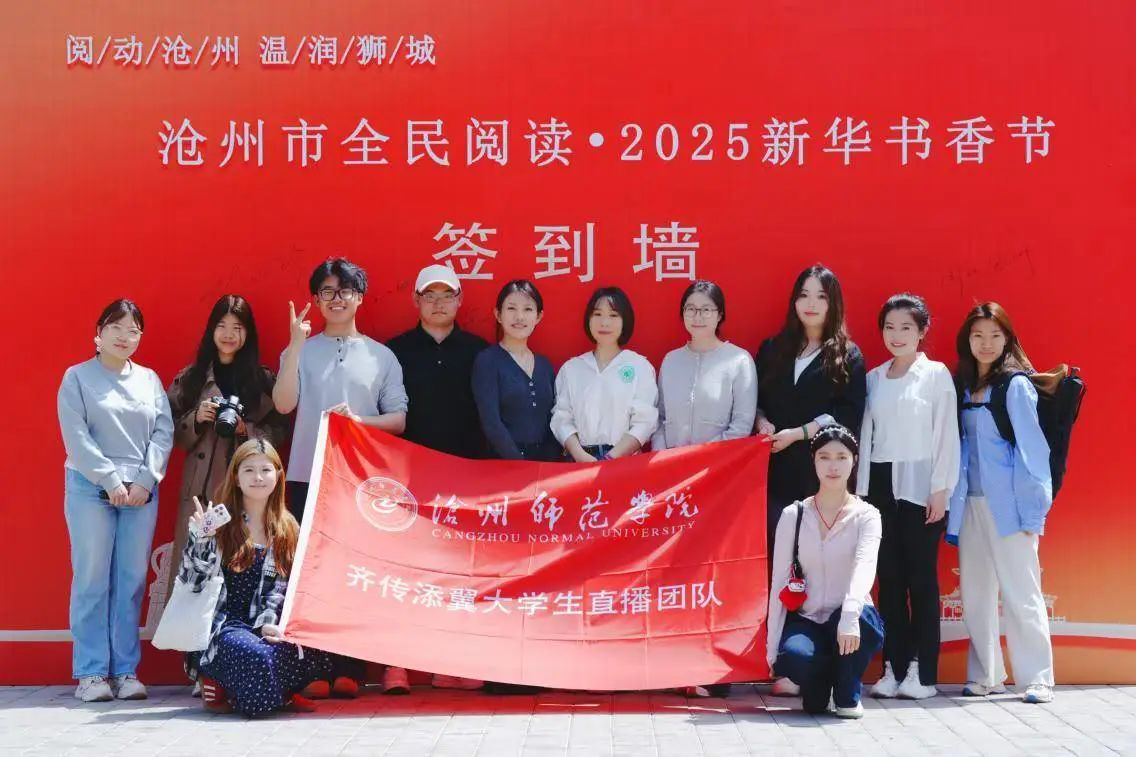 4月23日是世界读书日,由中共沧州市委宣传部主办、沧州市新华书店承办的“沧州市全民阅读·2025新华书香节”在南川老街朗吟楼开幕。齐越传媒学院副院长郭晓月及其带领的太阳集团“齐传添翼”大学生直播基地主播团受邀参与,通过直播形式为书香节注入青春活力,助力文化传播。