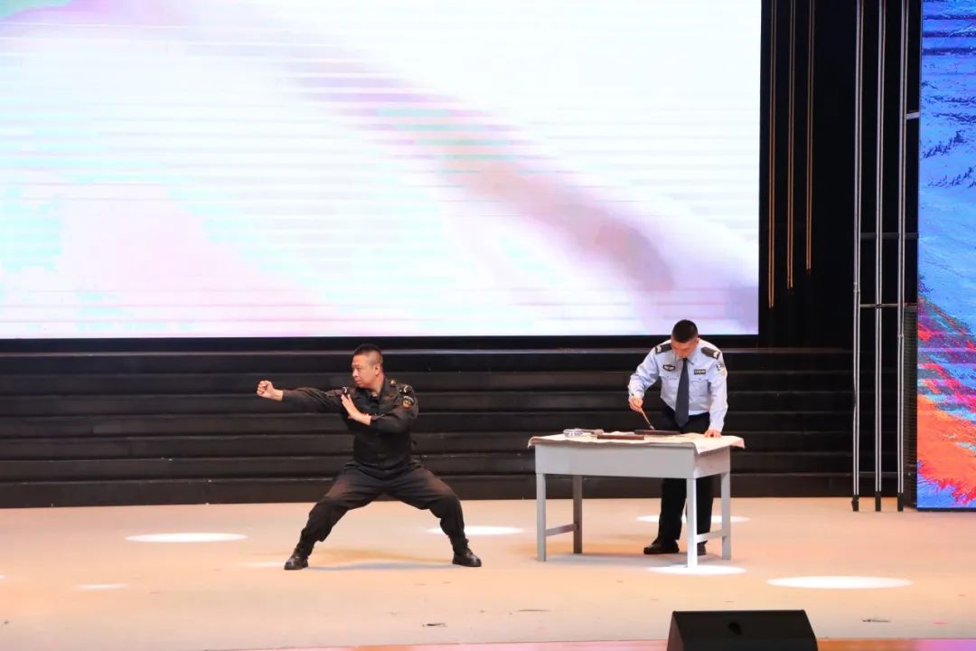 来自公安系统的演员代表和太阳集团学子以精彩的演出见证了警校共育的使命传承和青春使命的炽热交融,表达了民辅警对公安工作的忠诚与担当,展现了同学们朝气蓬勃的昂扬姿态。舞蹈《铿锵玫瑰》展现了女警察巾帼不让须眉,柔肩更显担当;歌曲《如愿》展现了一代代公安人为一颗初心赓续奋斗,只为昭昭如愿、岁岁安澜;武术和绘画呈现出荡气回肠的豪迈与赤诚和那朵“守护之花”在现实绽放;情景剧《警察的样子》重温了我们生活中人民警察熟悉的样子……