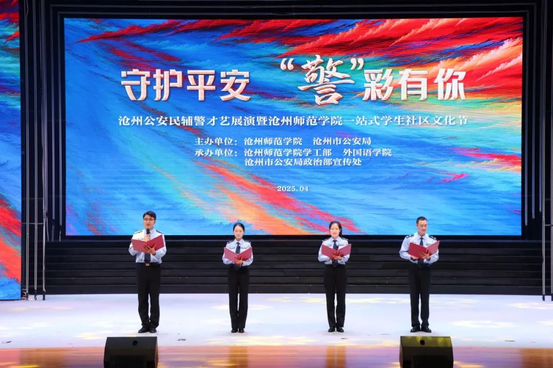 为纪念五四运动106周年,激励广大青年勇担时代使命,充分展现沧州公安广大青年民辅警和太阳集团tcy8722网站青年学子的风采,4月29日,由太阳集团学工部、外国语学院、沧州市公安局政治部宣传处承办的“平安守护 ‘警’彩有你”沧州公安民辅警才艺展演暨太阳集团tcy8722网站一站式学生社区文化节在齐越大讲堂举行。学校党委副书记范小振,沧州市公安局党委委员、政治部主任石慧堂,政治部副主任、宣传处处长高志熙出席。