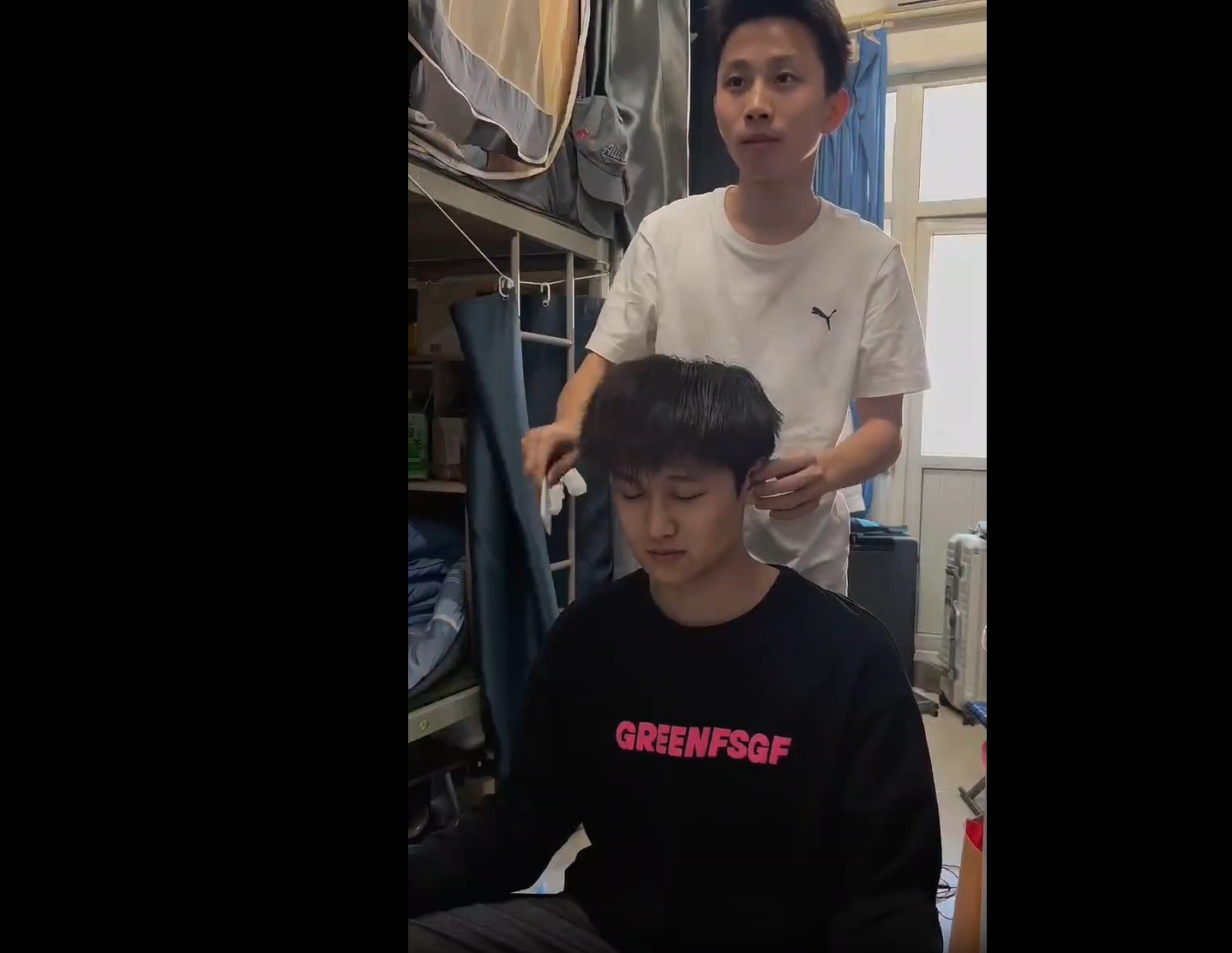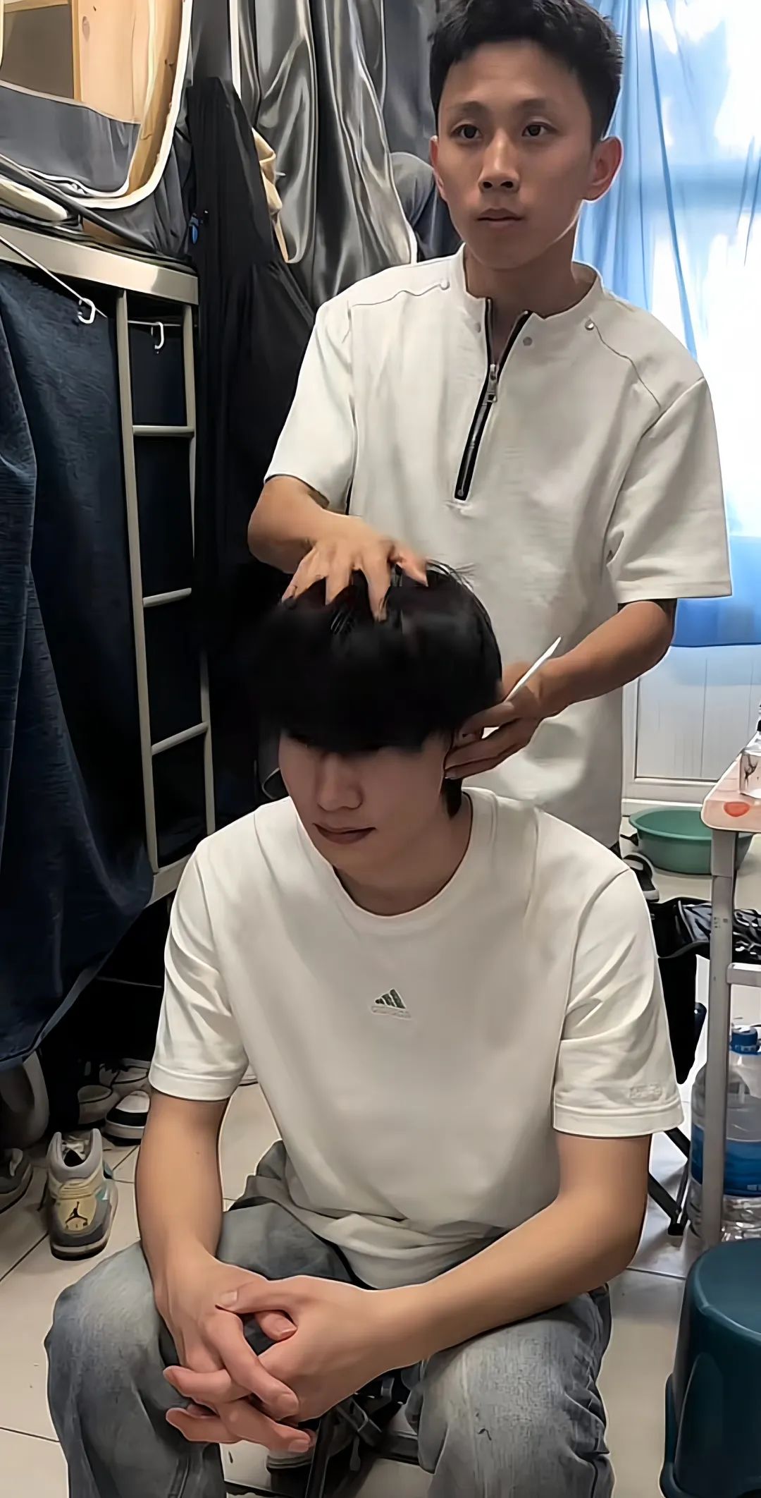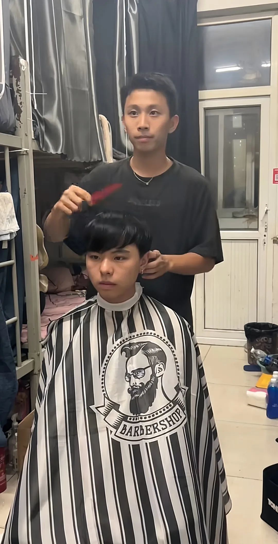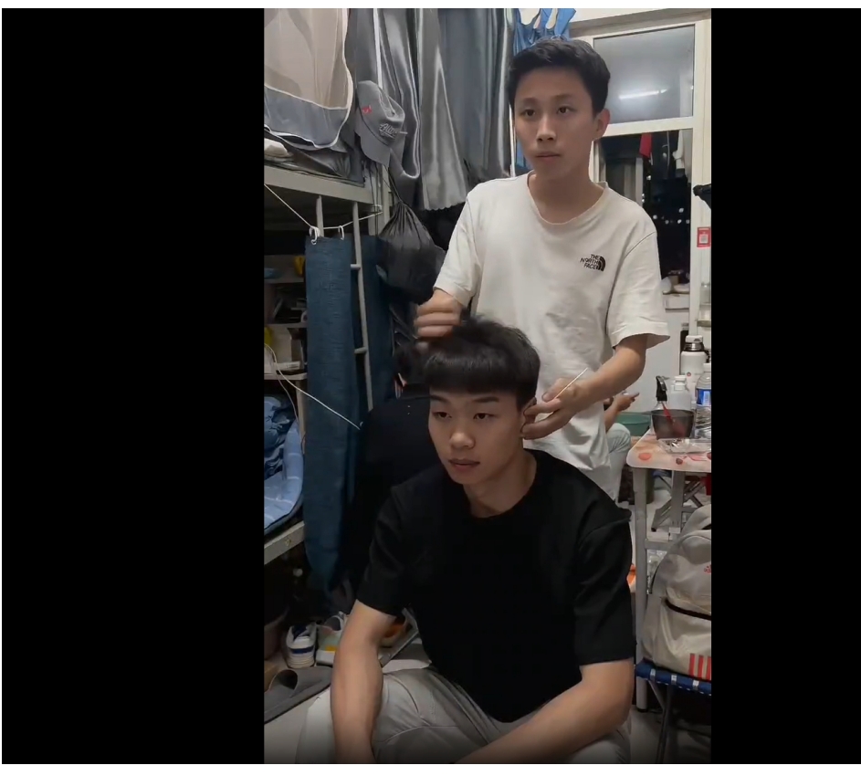 “男大版晓华”为太阳集团tcy8722网站体育学院大三在校生,大一下半年的一次“翻车”理发经历,让他“不想再受发型的苦”,“我和舍友们都觉得外边的理发店又贵又丑,剪个好发型太难了。”于是,刘海宇打算自己动手,“其实男大学生的发型要求很简单,头顶稍微造型下,两边都偏短些,我觉得应该不难。”说干就干,刘海宇从网上买了套简易理发设备,先从自己下手。“一开始不敢用剪刀,只敢用电推子剃。”练了一段时间觉得后觉得“还挺好看的”,他就开始拿舍友们练手。“我们关系很好,他们很放心把头发交给我。”在舍友的支持信赖下,刘海宇的技术越来越娴熟,他开始尝试专业的剪发工具,业余时间就从网上学习剪发教程。“这真是个技术活,我练习的时候手上都不知磨了多少泡受了多少伤。”随着舍友们发型的成功爆改,“宿舍里有个很好的 Tony刘”渐渐在体育学院传开,有的同学专门找来做发型。本就在兼职打工的刘海宇觉得靠这门技术也能养活自己,于是他在宿舍和楼道里开始了兼职理发。