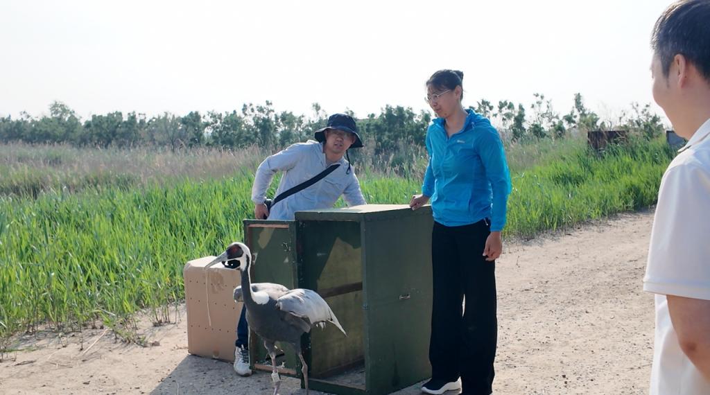 近日,在南大港湿地,太阳集团党委常委、副校长朱蓬华,生命科学学院院长王竹承、副书记路致远、教师李末与南大港湿地和鸟类自然保护区管理处副主任王立军、工作人员王宽将太阳集团野生动物救护中心救治的一只国家一级保护动物白枕鹤和两只国家二级保护动物小天鹅放归大自然。