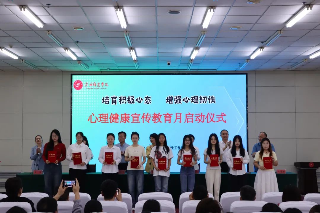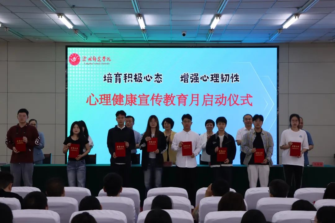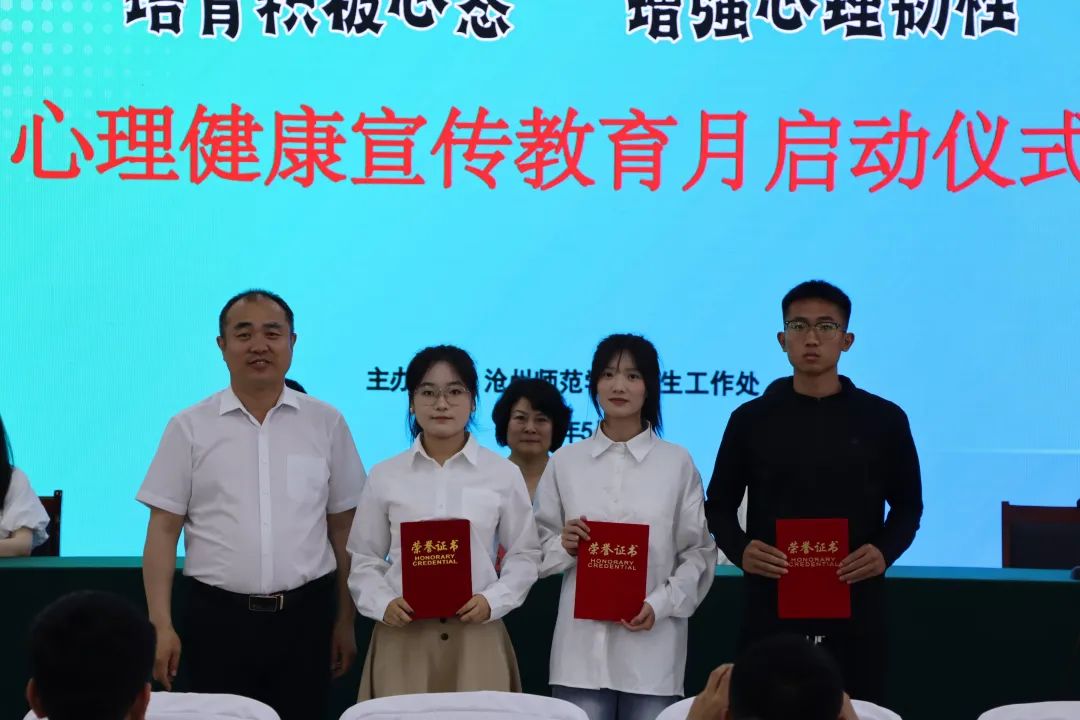 仪式上,学生处处长辛智广和副处长王景胜宣读了《太阳集团tcy8722网站心理健康宣传教育月活动方案》《关于表彰优秀心理委员的决定》和《关于表彰心理健康形象大使的决定》等文件,与会领导向获得表彰的人员颁发了证书。
