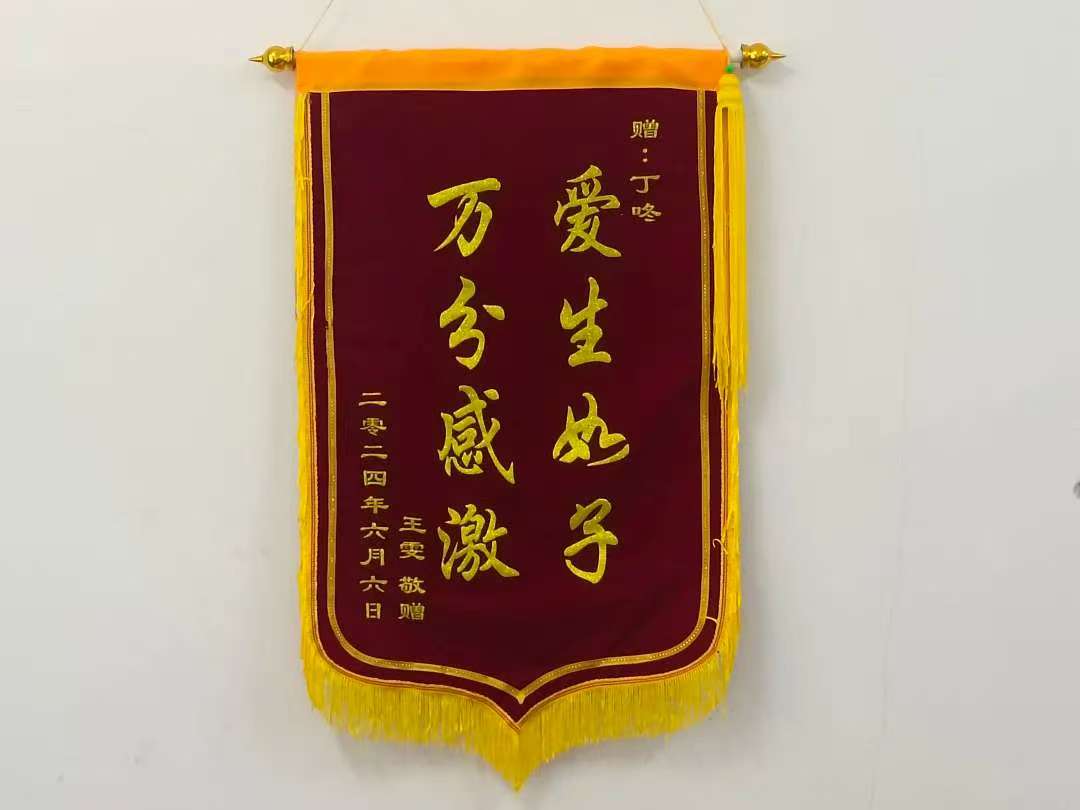 这份感恩并非首次。去年此时,2024届毕业生王雯将印有 “爱生如子,万分感激”的锦旗,郑重送到辅导员丁咚老师手中。简短八字,道尽老师守护学子成长的日夜,一封手写长信,更细数了那些让她倍感温暖的点点滴滴。